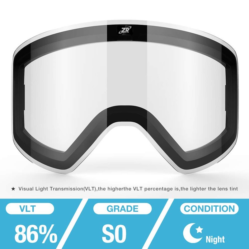 ZIONOR X11 Ski Snowboard Snow Goggles Replacement Lenses (Lens ONLY - VLT 86% Clear Lens