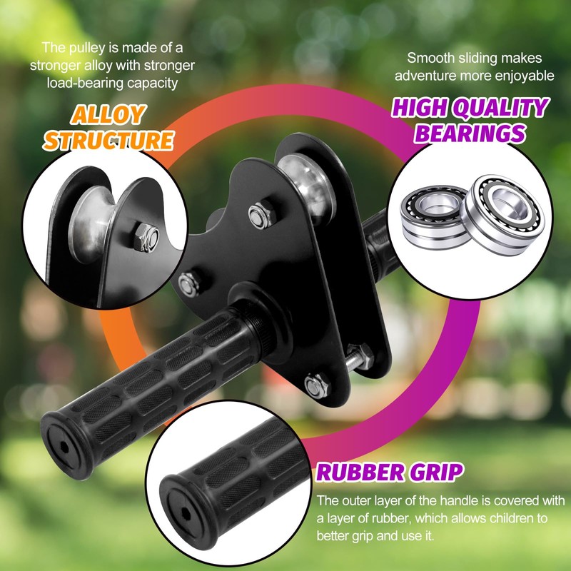 - ♥Satisfaction♥This sturdy zipline kit is a good companion for children's growth. This fun and challenging backyard project for the family is sure to give you an unforgettable experience! If you encounter any problems, please contact us first and we will do our best to help you solve them.