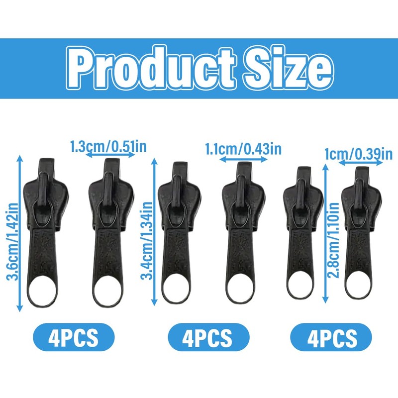 - 🌟Universal Kit:The replacement zipper puller kit includes three different sizes of zippers, enough to meet the demands of most daily sewing and craft projects.