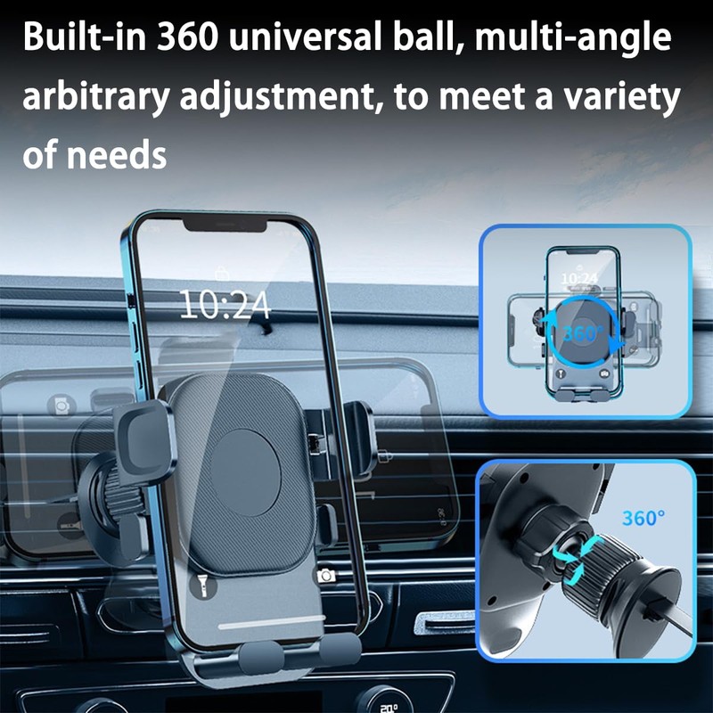 - 【360 Degree Free Adjustment】: The car vent phone mount features a 360-degree pivot mechanism, which enables you to switch your phone to landscape and portrait positions, as well as anywhere in between, ensuring reliable and safe driving regardless of whether you are listening to music, navigating, or answering the phone calls.