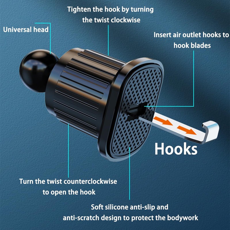 -- Durable metal clip hook steadily grip on your car's air vent.
