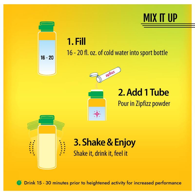 - CLEAN ENERGY WITHOUT THE SUGAR CRASH : Zipfizz energy drink powder is loaded with health boosting vitamins, antioxidants, & electrolytes. Each tube contains vitamin B12 + 100mg of caffeine that's naturally sourced from Green Tea & Guarana.