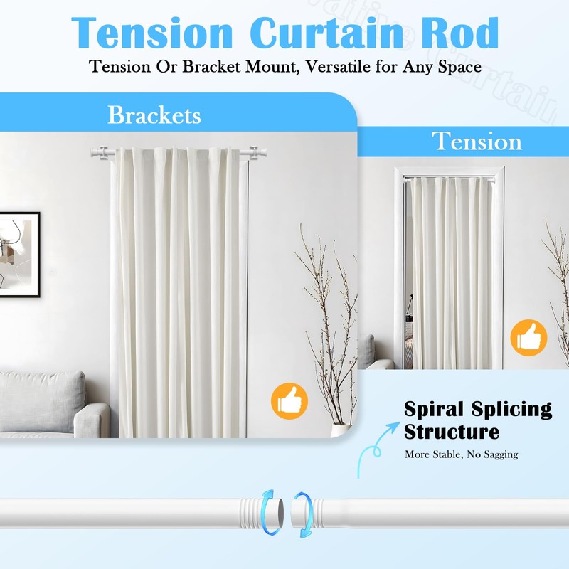 - ✔️【Versatile Use】This tension curtain rod is suitable for a variety of living situations, whether as a door curtain rod, window curtain rod, for hanging clothes, or for DIY projects. With two installation options, using spring tension or the included brackets, it offers stable support on both smooth and rough surfaces, meeting your creative and practical needs.