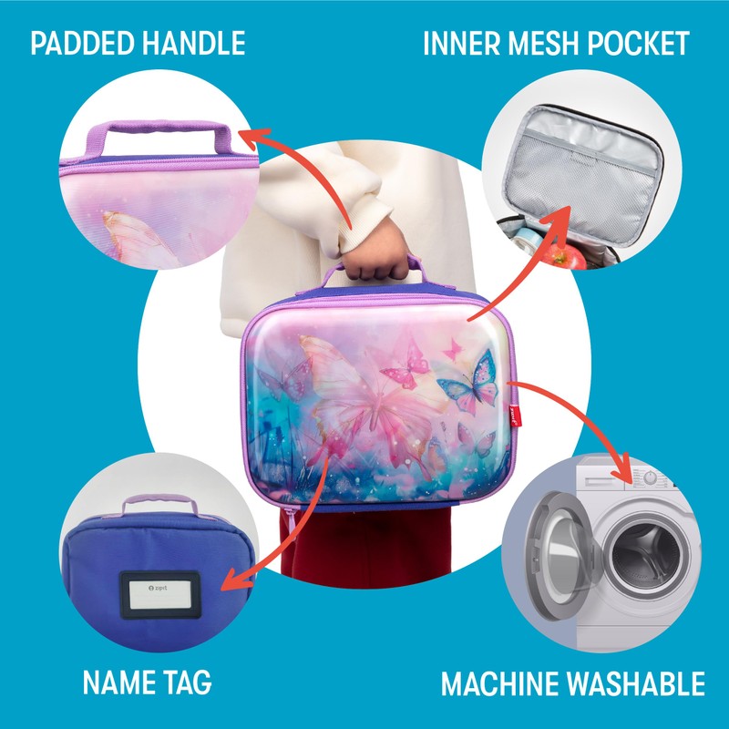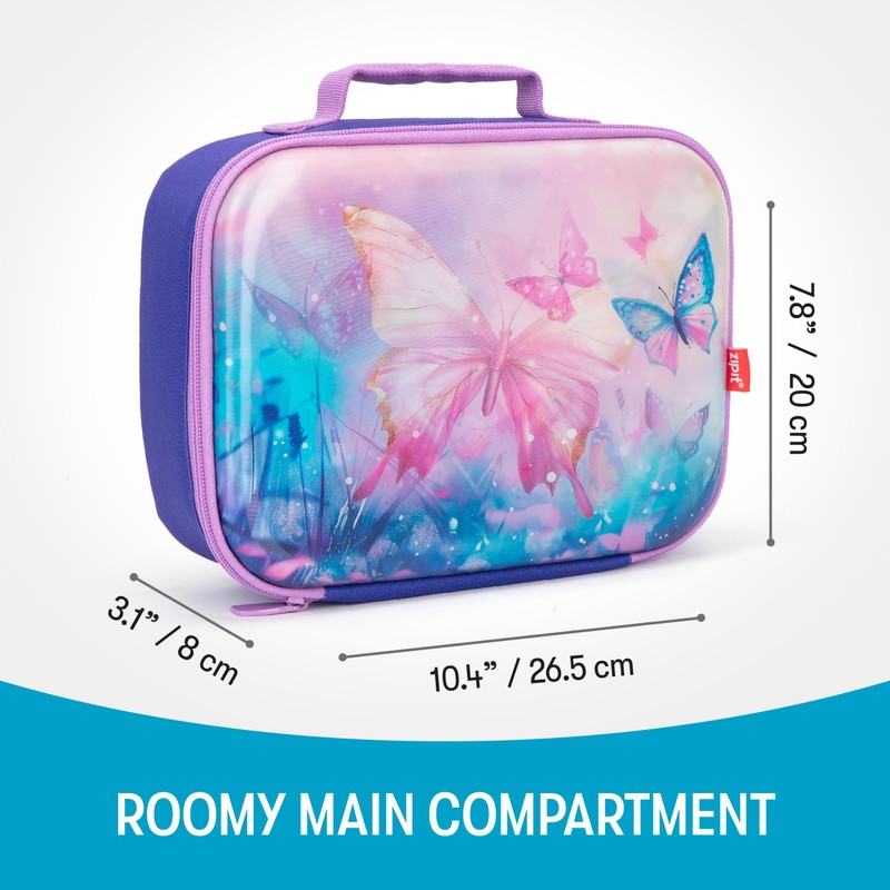 • 3D BUTTERFLY DESIGN - This lunch bag for girls features a stunning lenticular 3D butterfly design that shifts as you move, creating a magical and captivating effect that kids will adore.