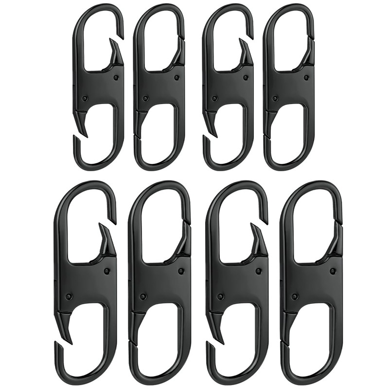 - Double Open, It Is Very Easy to Operate. No Tools Need, Just Clip It ON, Attach Instantly and Securely!You Can Use It at Any Where You Need,Set of 8 pcs dual carabiner clips included(4 Pcs bigger size; 4Pcs smaller size)