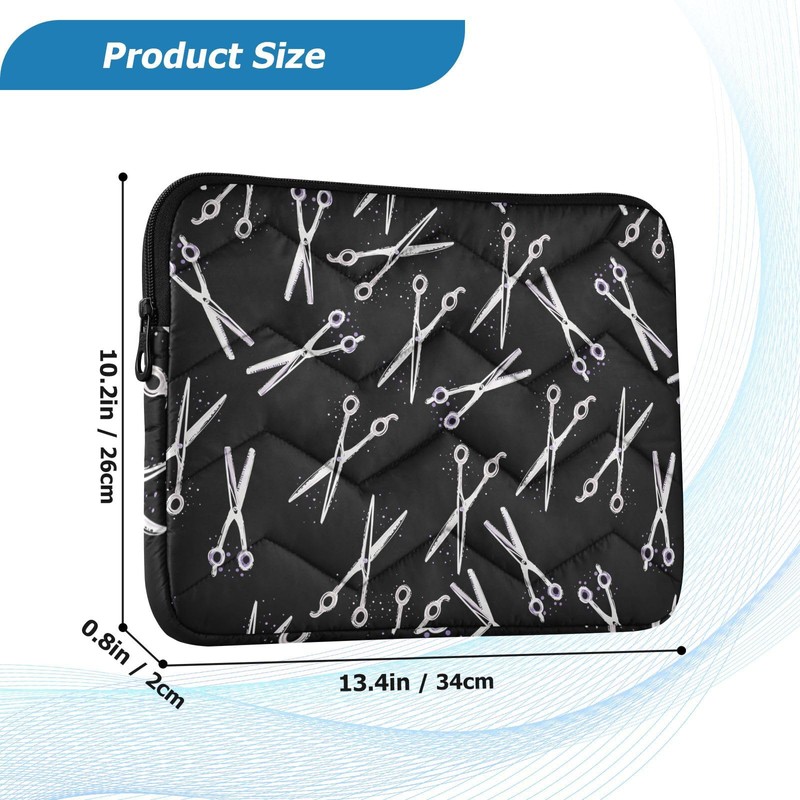 Zipper Laptop Messenger Bag, Case Sleeve Suitable for 13 in to 14 in Notebook Bag, Shoulder Strap Tablet Briefcase Print Hairdressing Scissors Seamless On Black