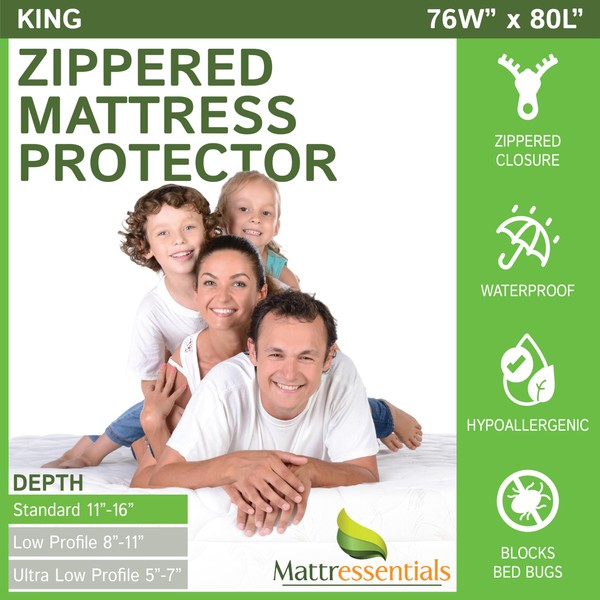 Zippered King Mattress Protector - Bed Bug Waterproof Mattress Cover, Premium Quality Hypoallergenic Encasement