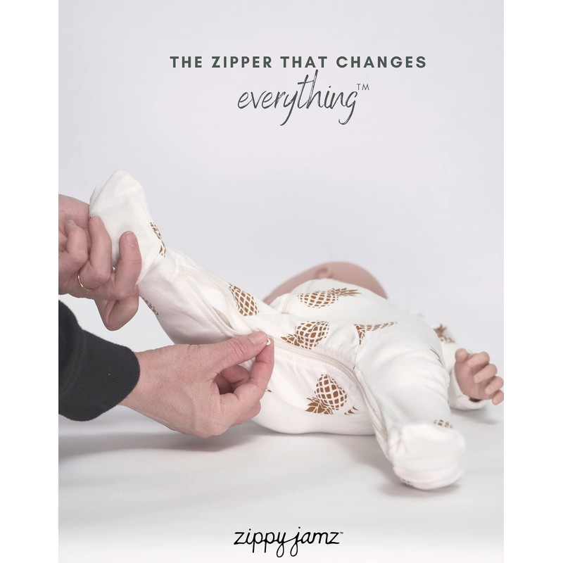 - Original print designs seamlessly blend modern style with traditional elements. The perfect gift for yourself or a loved one for better sleep and easier diaper changes. ZippyJamz – The Zipper that Changes Everything! Unzip. Change. Zip. Done.