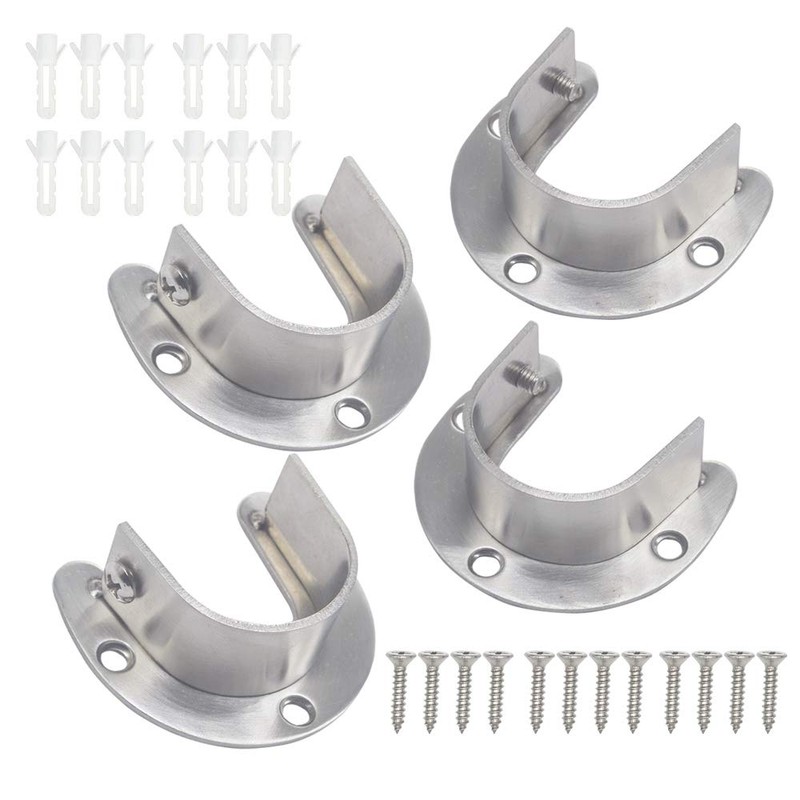 ZipSeven 1-5/16 Shower Closet Rod Holder Set U Shaped Hanging Rod Flange Socket Heavy Duty Curtain Pole Bracket Supports Stainless Steel Matte Black 4 Pack (Silver, Big)