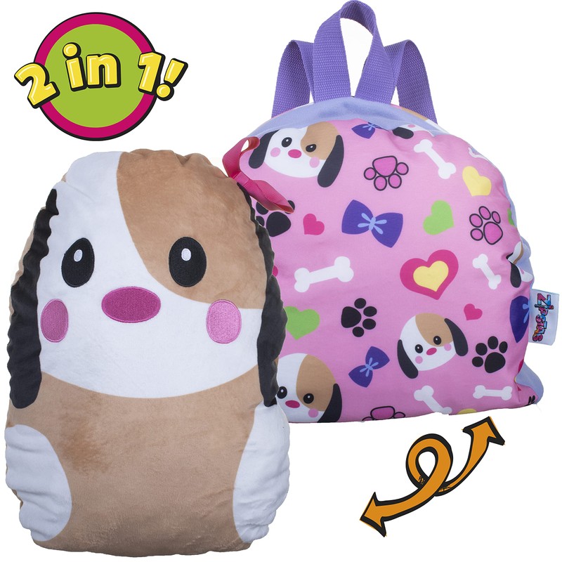 Zipstas Snuggle Pals 2-in-1 Girls Sleepover Bag Reversible Backpack Cuddly Puppy Dog Soft Toy and Full Sized Bag