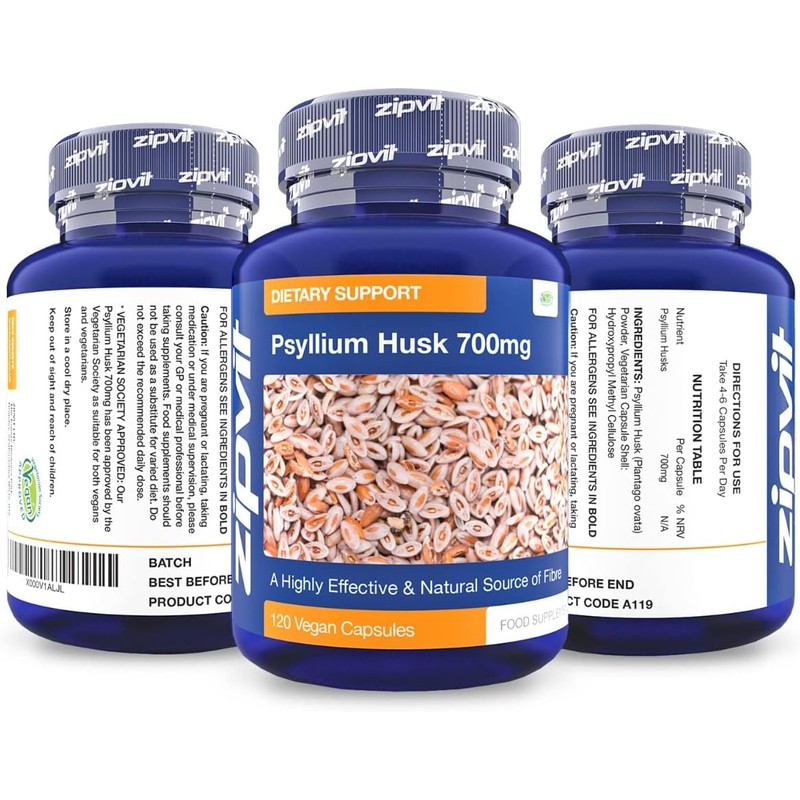 Zipvit Psyllium Husk Fibre Supplement, 700mg Psyllium Husk Powder Per Capsule, up to 4200mg Per Serving, 120 Vegan Capsules