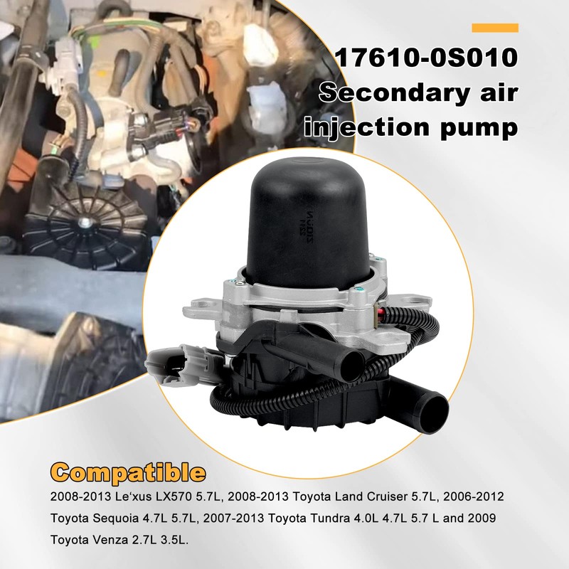 - 【Compatible Models】 17610-0S010 Secondary air injection pump compatible with 2008-2013 Lexus LX570 5.7L, 2008-2013 Toyota Land Cruiser 5.7L, 2006-2012 Toyota Sequoia 4.7L 5.7L, 2007-2013 Toyota Tundra 4.0L 4.7L 5.7 L and 2009 Toyota Venza 2.7L 3.5L.