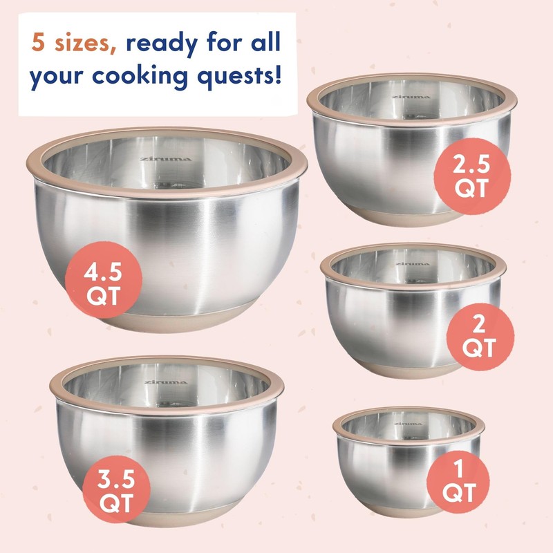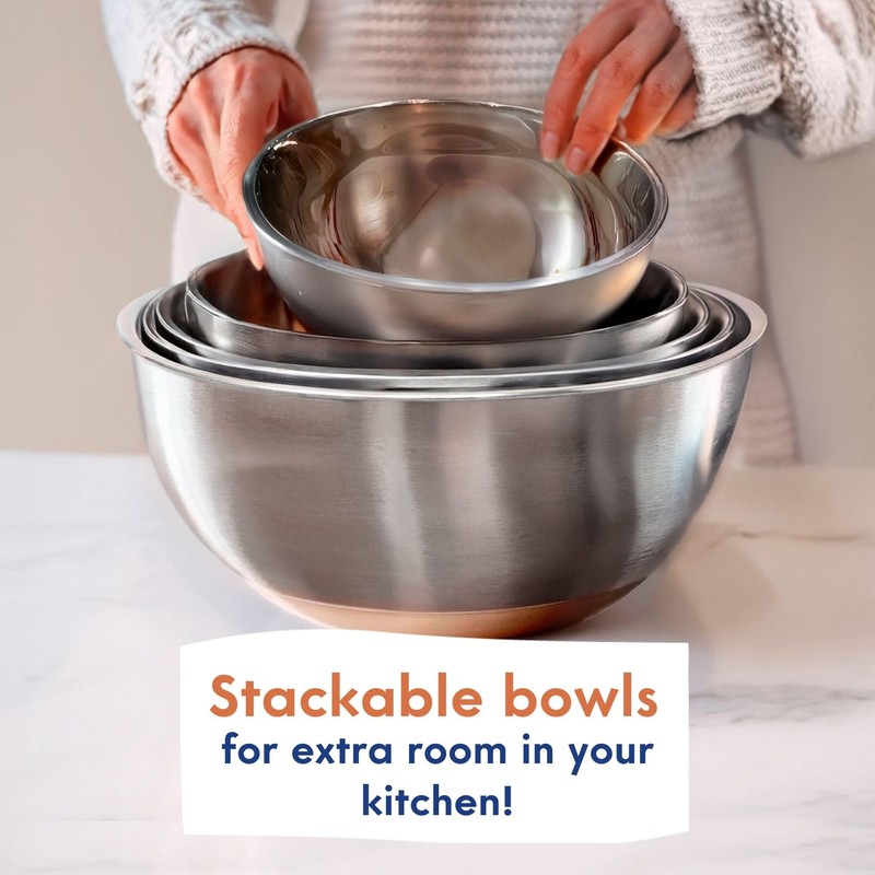 - โ ๐ ๐ถ๐ , ๐ฃ๐ฟ๐ฒ๐ฝ & ๐ฆ๐๐ผ๐ฟ๐ฒ ๐๐ถ๐๐ต ๐๐ฎ๐๐ฒ โ No matter the recipe, this stainless steel mixing bowl set has the perfect size. Includes 1, 2, 2.5, 3.5 & 4.5 qt bowlsโgreat for baking, meal prep, and more!