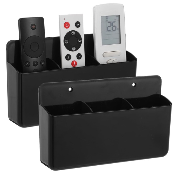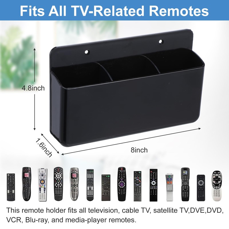 - Package Includes - 2 pack 3 compartment remote control holder (Black). 2 pcs self-adhesive traceless tape. The wall remote holder size: 8 x 4.8 x 1.6 inches, (20 x 12 x4 cm). Our remote control organizer size helps you save space, tidy up the workspace and decor your room.