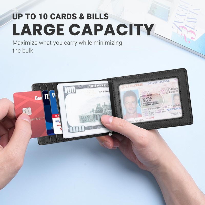 Zitahli Wallet for Men-6 Slots ID Window-Mens Wallets-Slim Wallet Classic Spring Money Clip RFID Blocking-Gift for Men