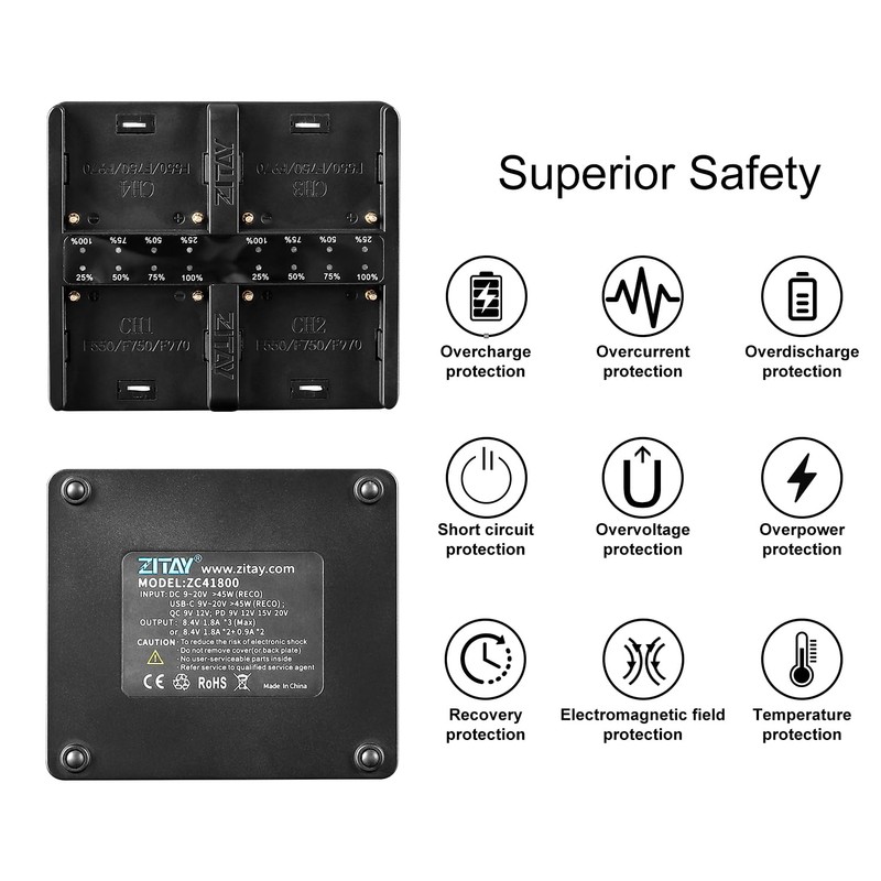 ZITAY 4-Channel USB C Fast Charging Station for Sony NP-F550, NP-F750, NP-F770, NP-F970 Batteries