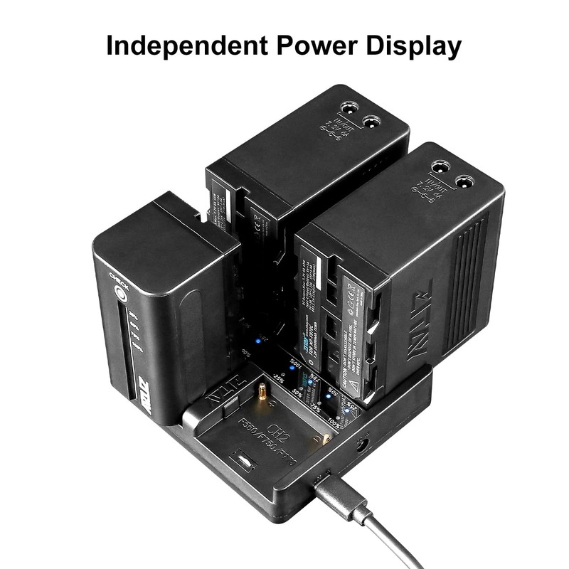 - 3 NP-F970 batteries get fully charged within 3.5 hours simultaneously(*The power adapter and USB-C cable NOT included)