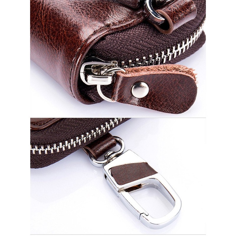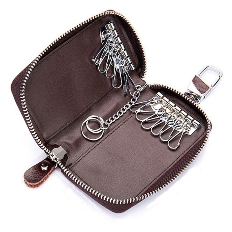 Unisex Leather Key Case Holder Wallet with 12 Ring Key Holder & 1 Key Chain