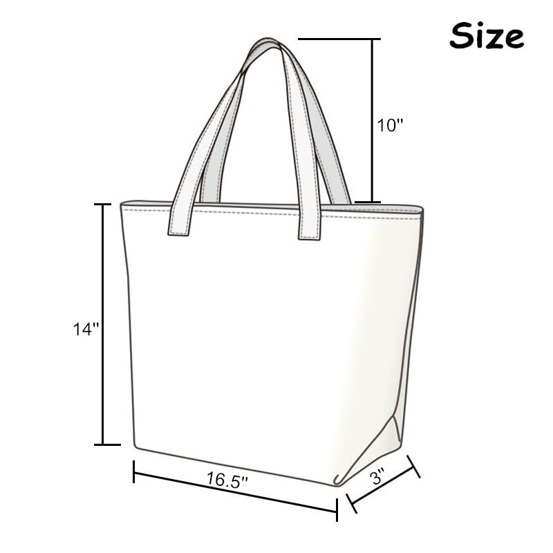 - Large Tote Bag: 16.5 inches x 14 inches with 10 inches long handle. Suitable for grocery, school, book, travel, beach