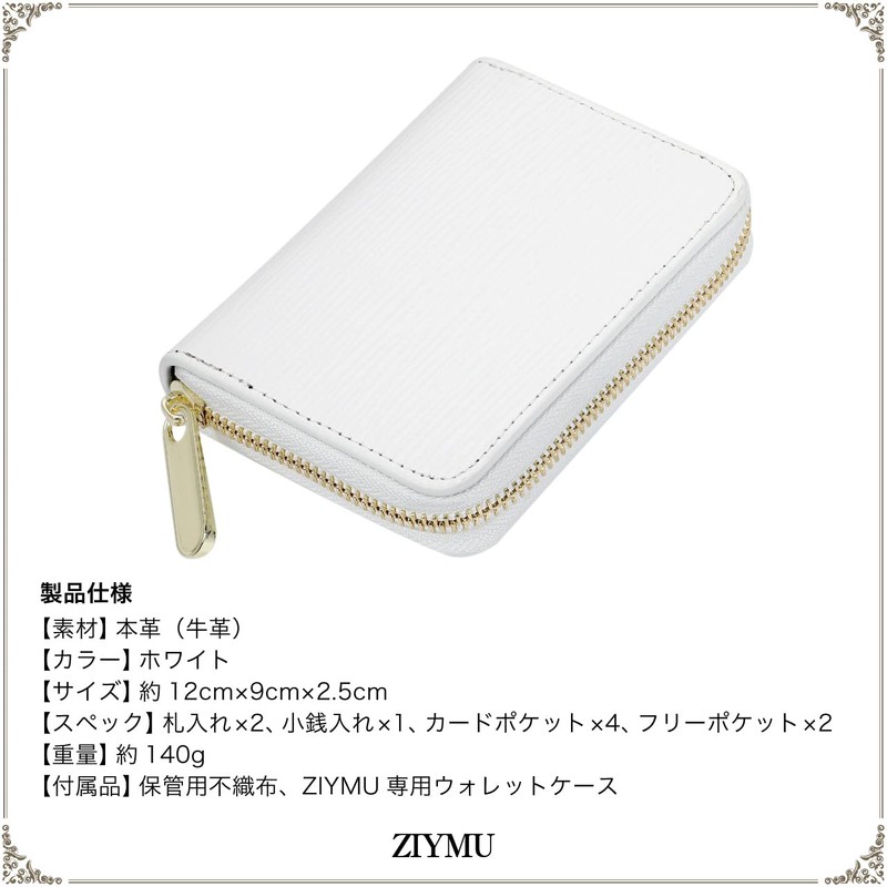 ZIYMU W2-002 Short Wallet, Round Zipper, Coin Purse, Genuine Leather, Embossed Cowhide Leather, Case Included, 4 color, white