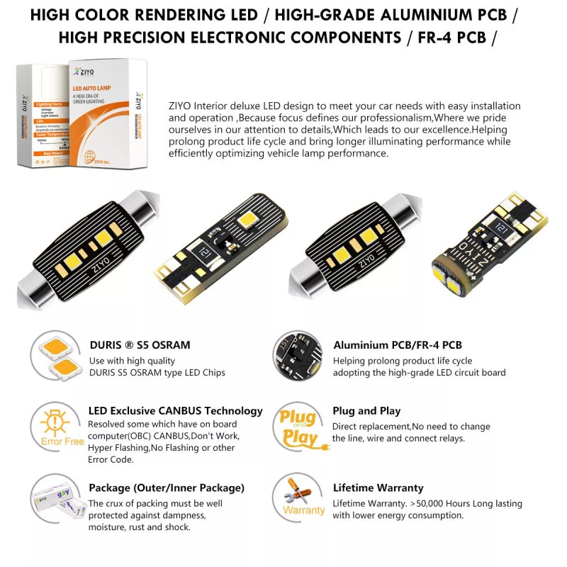 New Style Promotion Version "High Color Rendering Index (CRI RA97) " LED INTERIOR LIGHT Replacement.