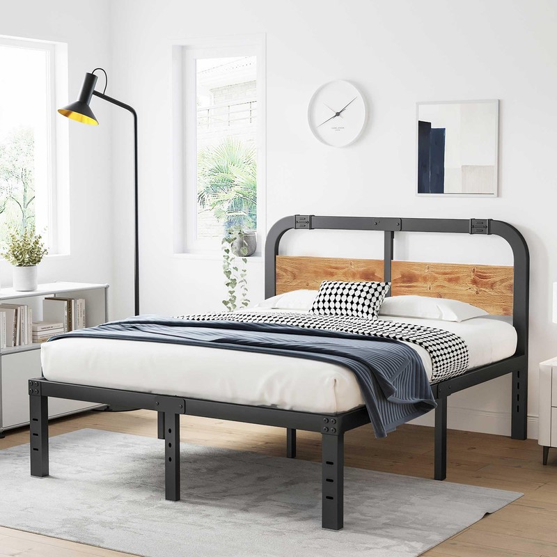 - 【Unique Design】The combination of a rustic headboard with a black metal bed frame creates a mild country look without being too trendy. This vintage Queen size bed frame is a stylish addition to your bedroom and will suit most bedroom styles. The headboard is made of waterproof and scratch-resistant wood.