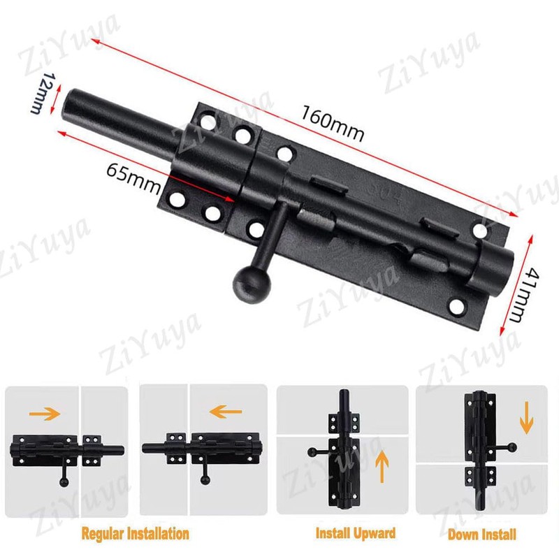 ZiYuya 304 Stainless Steel Sliding Gate Latch, Door Lock with Padlock, Sliding Bolt Lock, Bolt Lock, Lockable Push Bolt on Both Sides, Black, 160 mm