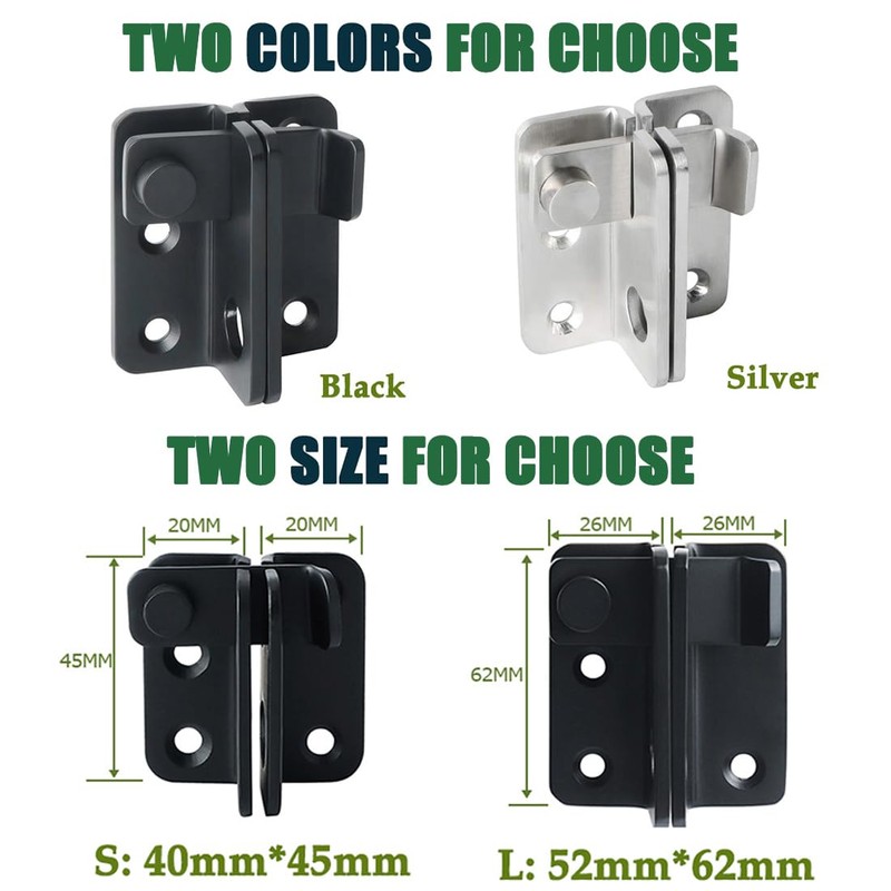 - Product Size: Small: 40mm x 45mm/1.57" x 1.77"(L*W); Large: 52mm x 62mm/2.04" x 2.4PACKAGE INCLUDED Each latch comes with 4 screws.