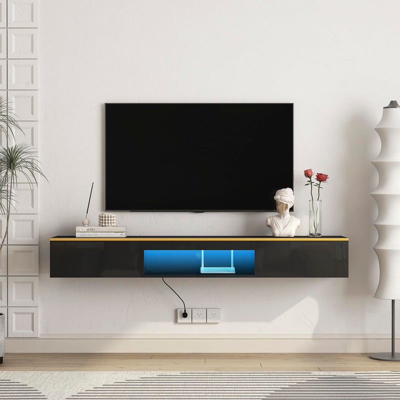 • Transform Your Living Space: This stylish floating TV stand enhances your home decor with its sleek design and modern aesthetics, making it a perfect fit for contemporary interiors.