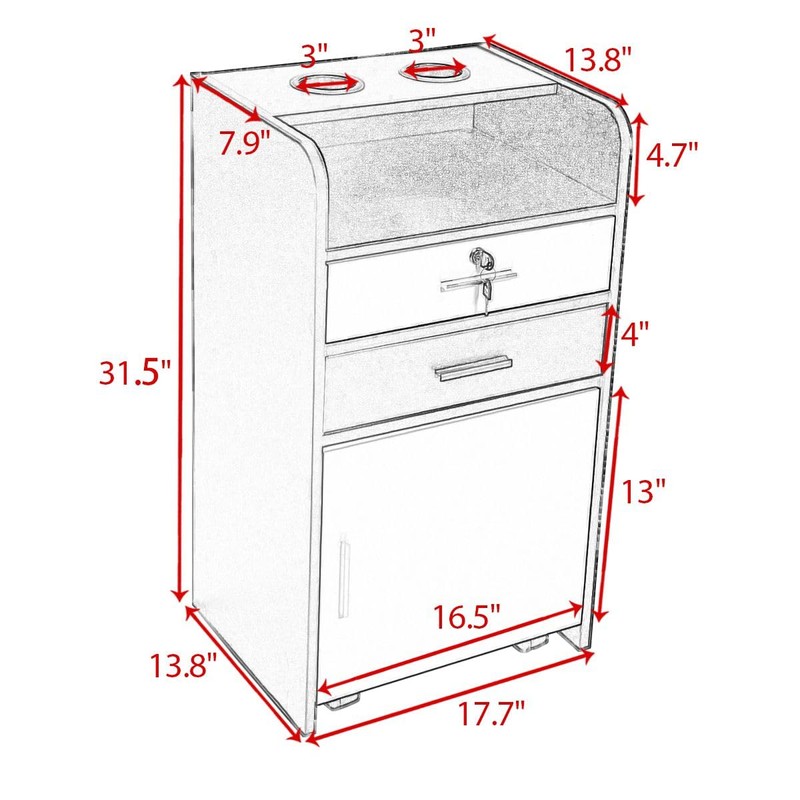 Smart Storage ManagementStay organized with two spacious drawers and one cabinet. These compartments provide ample room for all your tools, from styling products to magazines. The top drawer features a lock, allowing you to secure your items for added peace of mind.