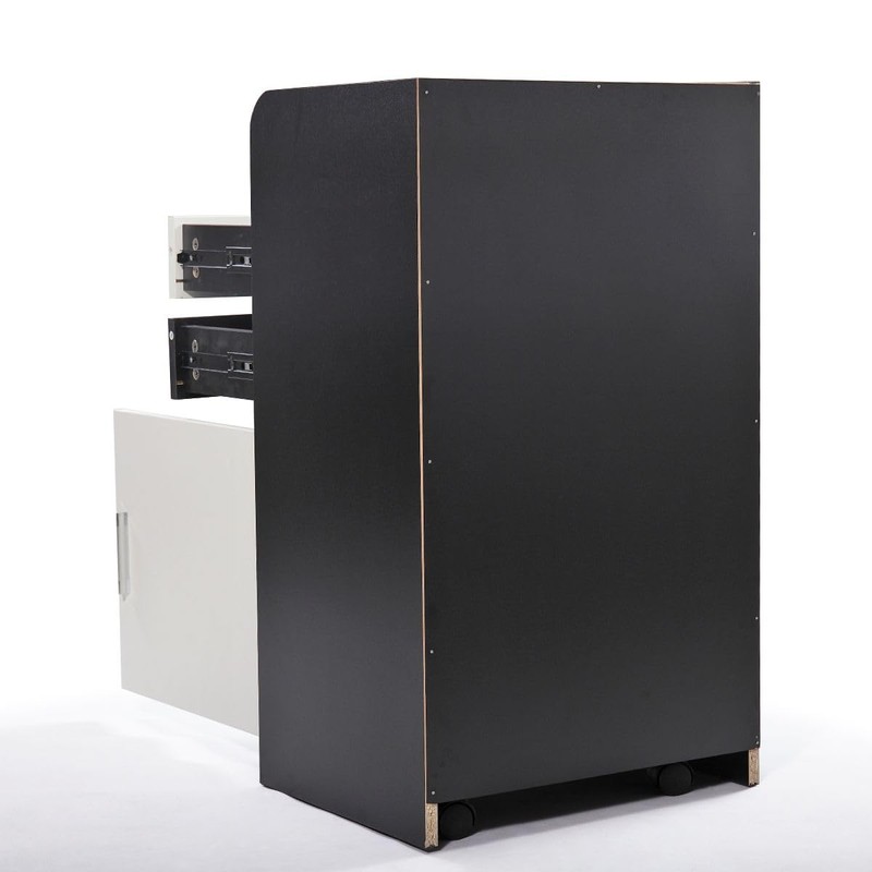 Transform your salon experience with this compact styling station, expertly designed to fit in various environments—be it a professional hair salon, cosmetic studio, or even your home. Its elegant black and white color scheme adds a touch of while providing functionality.