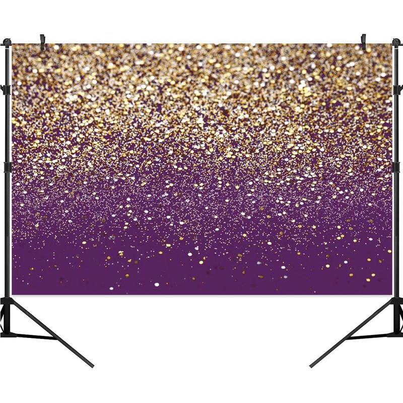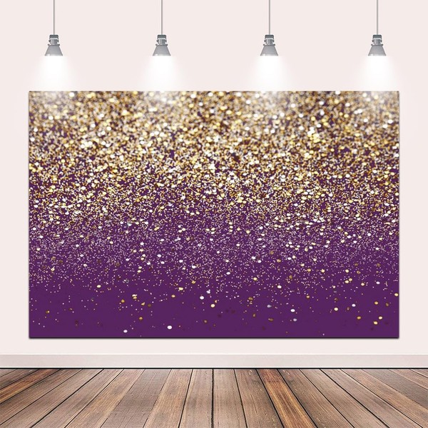 • 💙【Econ Vinyl Material】: Glitter Purple and Gold Backdrop for Girls. No pungent smell; Durable but thin; Collapsible, Seamless; Light weight, Easy carrying; Not waterproof.