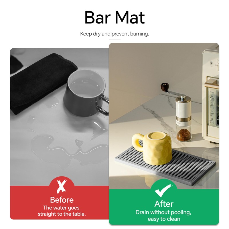 - HIGH QUALITY MATERIAL: Our gray bar mat is made from premium quality materials that have been carefully selected to ensure superior durability and long-lasting performance. Whether it's in a busy bar environment or a cozy home coffee corner, this mat is built to last.
