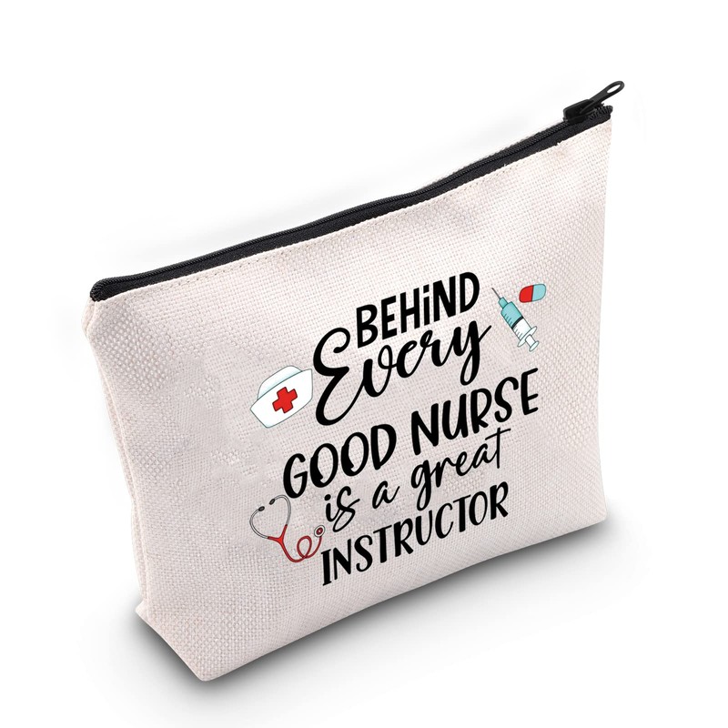 ZJXHPO Nurse Educator Survival Kit Behind Every Good Nurse Is A Great Instructor Makeup Bag with Zipper Nurse Teacher Appreciation Gift (C-Nurse Instructor)