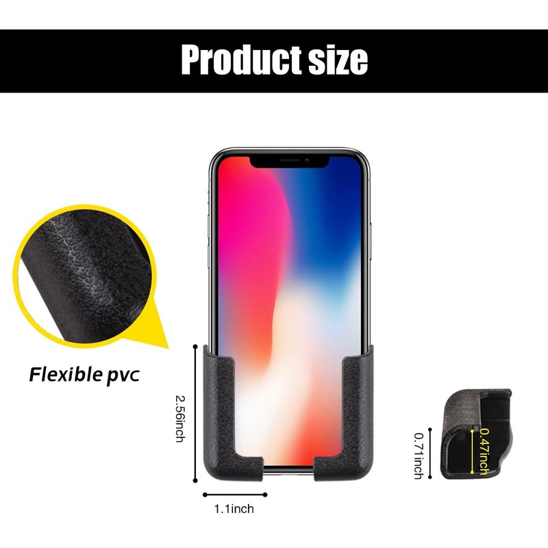 - Compatible: Most phones less than 12mm/0.47 inches thick. Product size is 65*28*18mm/2.55*1.1*0.7 inches. It is made of double-sided adhesive material, which has strong adhesion, stable and will not fall off. For car, bedroom, bathroom, study room, living room, etc.
