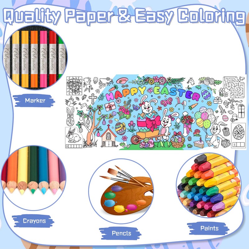 - 🎉 【Packaging】You will receive 1 piece Easter coloring table cloth and 12 piece colorful watercolor pencils.