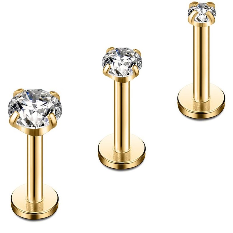 ZKGYUS 3pcs Titanium Lip Piercing Internal Thread Medusa Piercing Nose Piercing Stud Medical Stud Piercing Ear Small Conch Tragus Piercing Gold Silver Helix Piercings