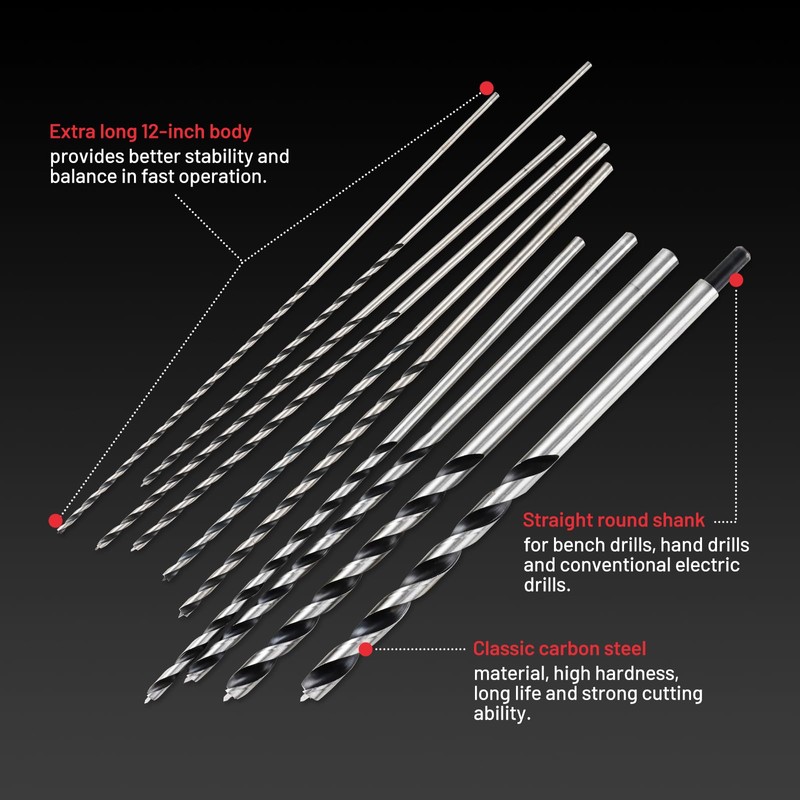 • 【Efficient Drilling】 The extra-long 12-inch body provides better stability and balance during fast operation. The double flute design allows wood chips to be expelled more quickly from the drill hole, and the double cutting edge makes the drill bit easier to cut into the wood, reducing drilling resistance. These detailed designs greatly enhance the drilling efficiency.