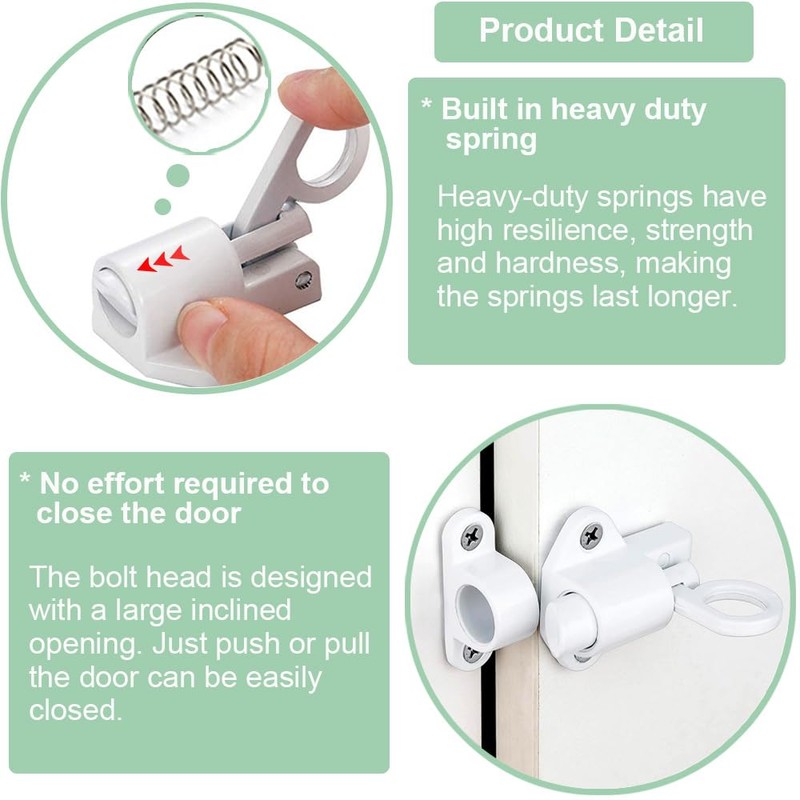 - What You Get: 4 x self-closing latch slide locks; 1x screwdriver; 1x adhesive stripe and screws.(Tip: Automatic self closing locks cannot be used as locks for indoor doors to close them.)