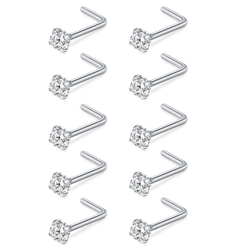 ZKSXOA 10 Pieces Nose Piercing Studs Surgical Steel Silver L Shape Nose Stud Piercing Nose Stud Ring Nostril Piercing Women's Nose Piercing Nose
