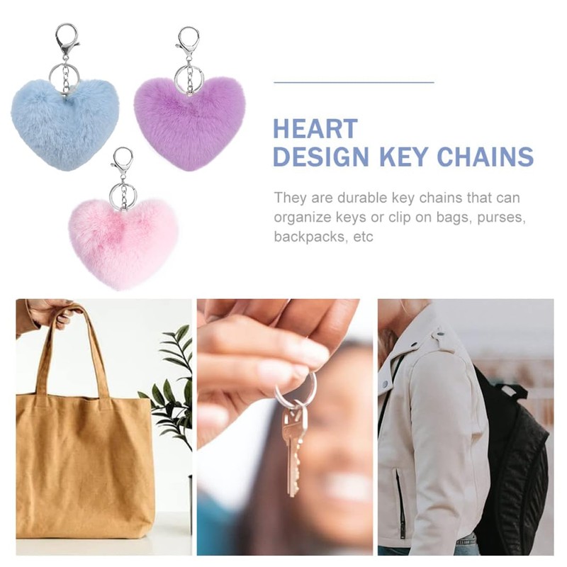 ZKSXOA Set of 3 Love Bobble Keyrings, Plush Toy Pendant Accessories, Suitable for Bag for Women and Girls, Pink, Purple, Blue, pink