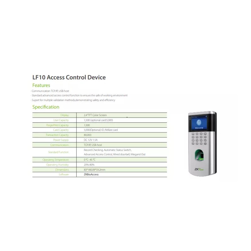 ZKTECO Access Control KIT 1,500 Users Mag Lock ID Cards TCP/IP