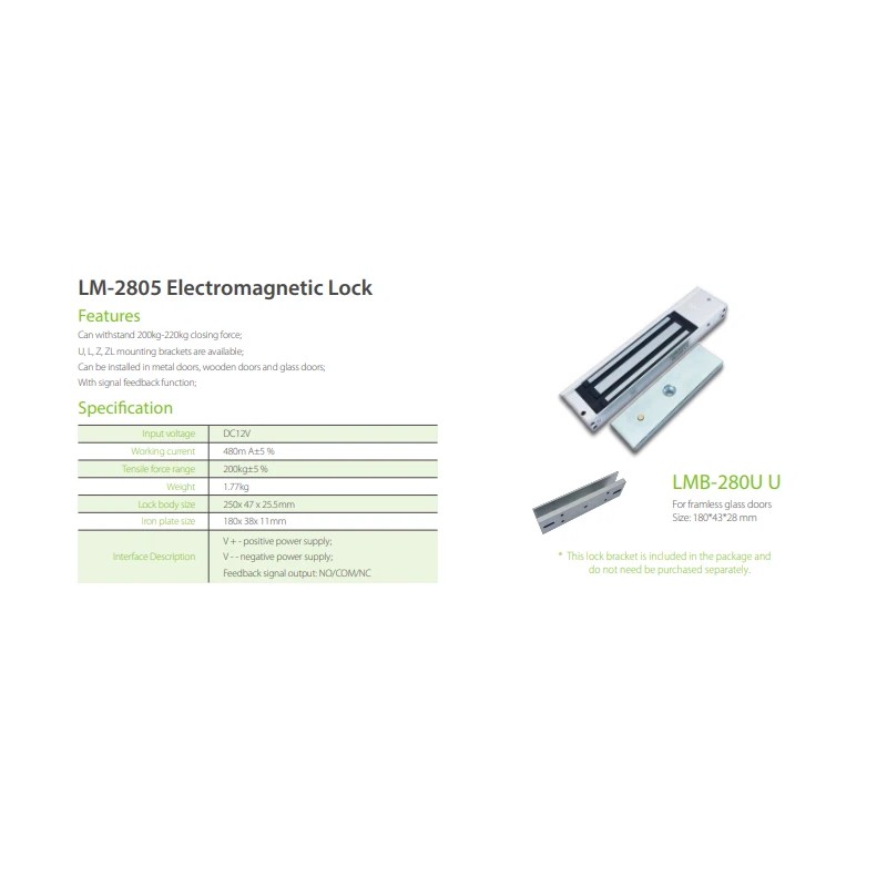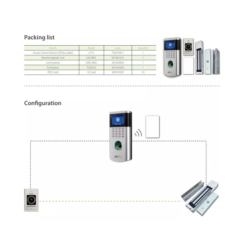 - Includes: Maglock LM2805, Exit button TLW102 and 10 EM Cards