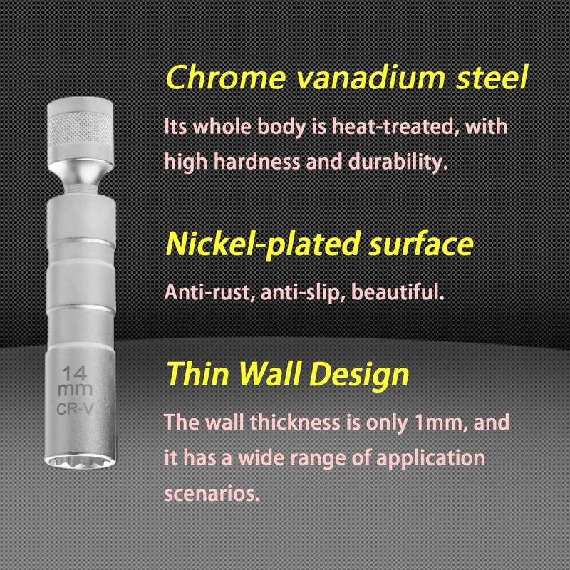 - 【Profession Spark Plug Socket】 The swivel head could 360 degree swivel, necessary tool for a spark plug change, and the only way to get spark plugs out on some car model.