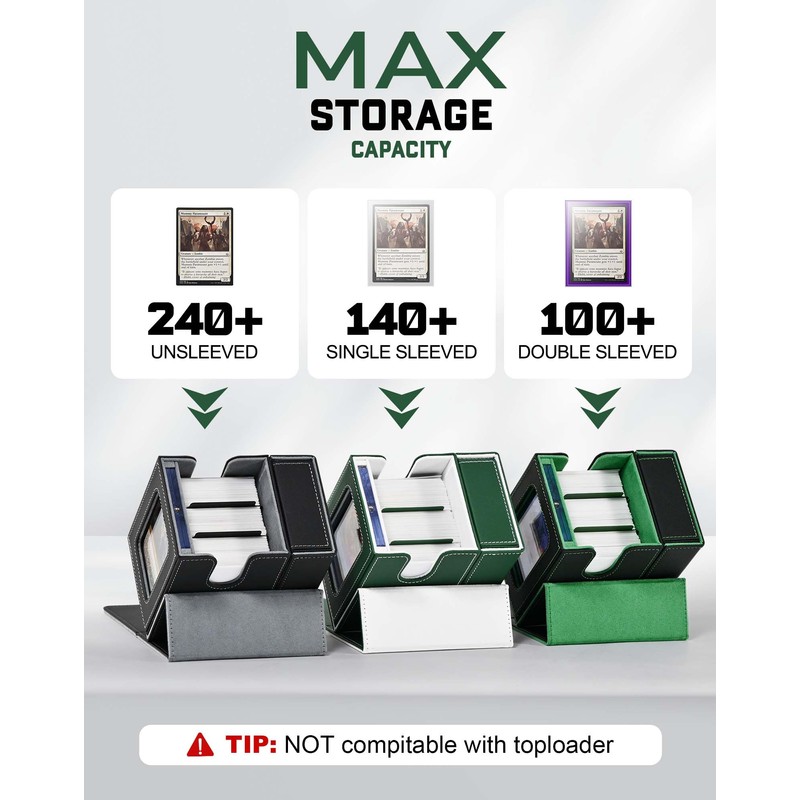 - Ample Capacity: This ZLCA mtg deck box commander provides storage for up to 100 double-sleeved cards or 140 single-sleeved or 240 unsleeved cards, A dice tray is also included that ensures all your gaming essentials are neatly organized and within easy reach