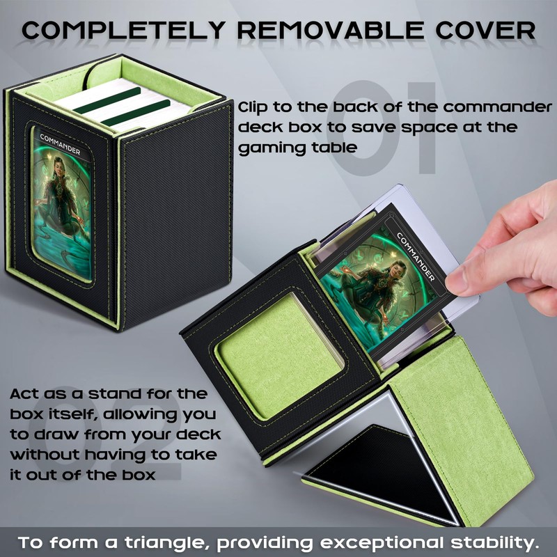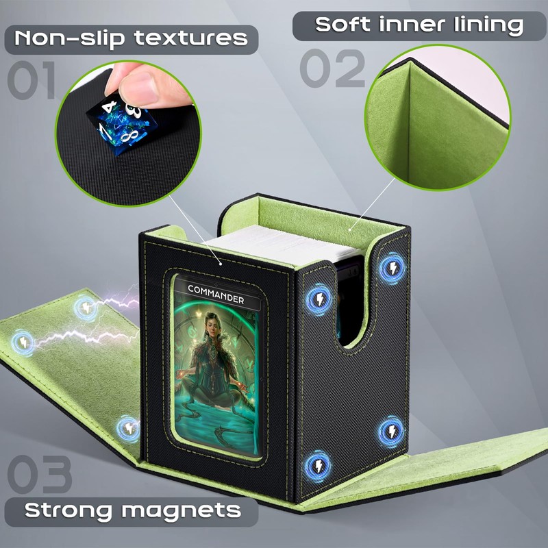 ZLCA MTG Deck Box with Commander Display, Magnetic Trading Card Box for 100+ Sleeves Cards, Premium Card Storage Box with 2 Card Separators, 1 Toploader Compatible with Trading Cards (Black & Green)