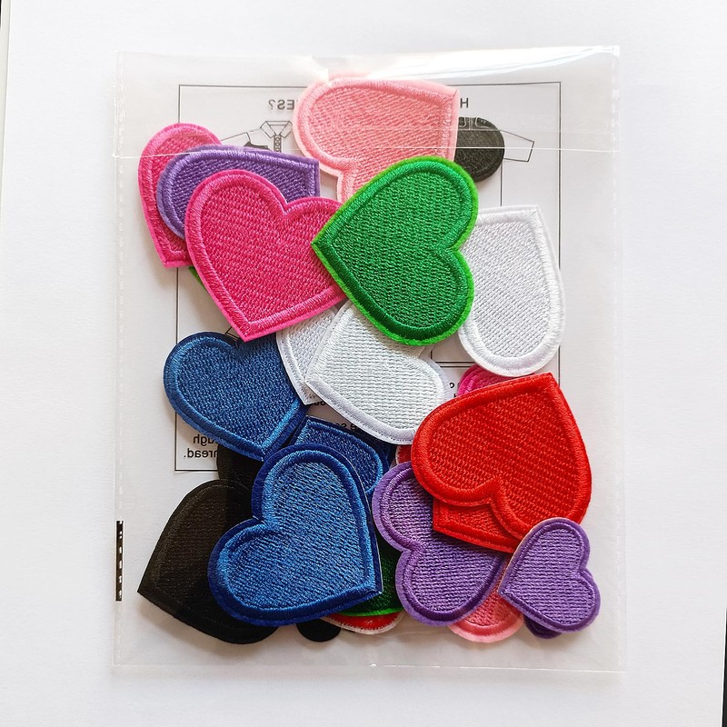 - Pakage: 32pcs heart patches iron on (with hot melt adhesive on the back).