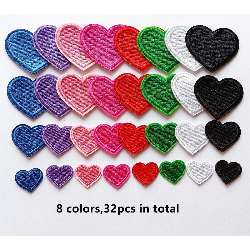 - Size: 8 colors and 4 sizes heart Embroidered patches, each color with 4 pieces.