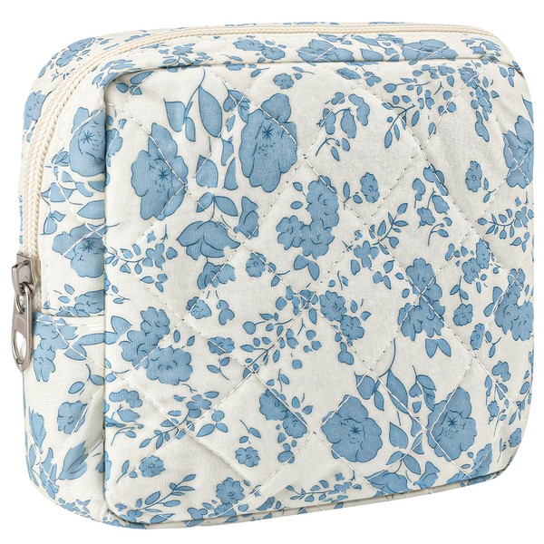ZLFSRQ Small Quilted Makeup Bag for Purse Mini Quilted Pouch Cute Cotton Makeup Bag with Compartments Aesthetic Cosmetic Bags for Women Coquette Zipper Travel Toiletry Bags Lipstick Pouch, Flower