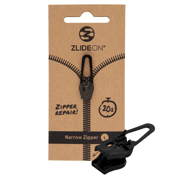 ZlideOn Zipper Pull Replacement - Black, Narrow (L) - 5C - Instant Zipper Replacement Slider